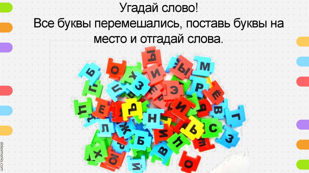 Угадай слово!Все буквы перемешались, поставь буквы на