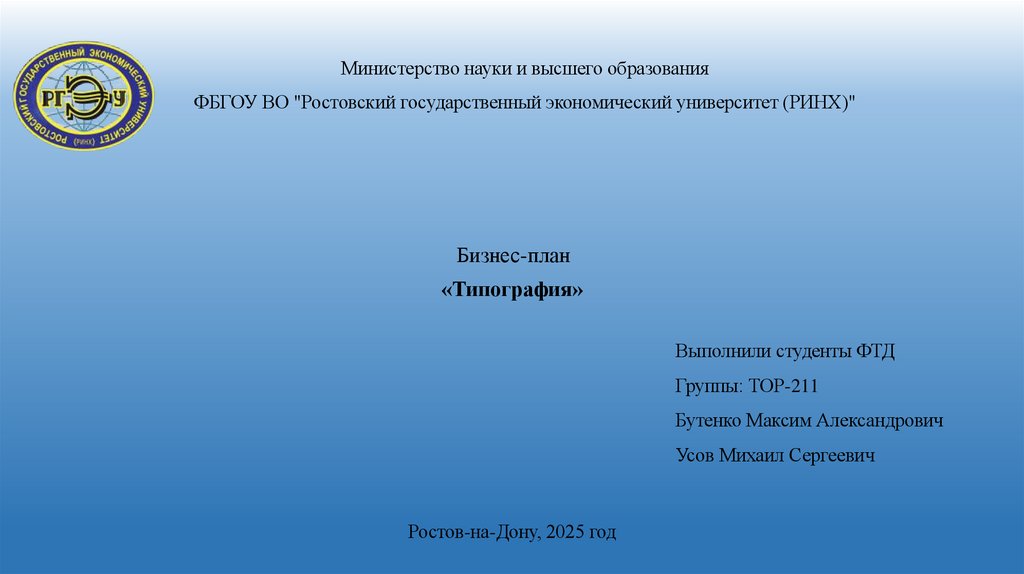 Министерство науки и высшего образованияФБГОУ ВО "Ростовский государственный экономический университет (РИНХ)"