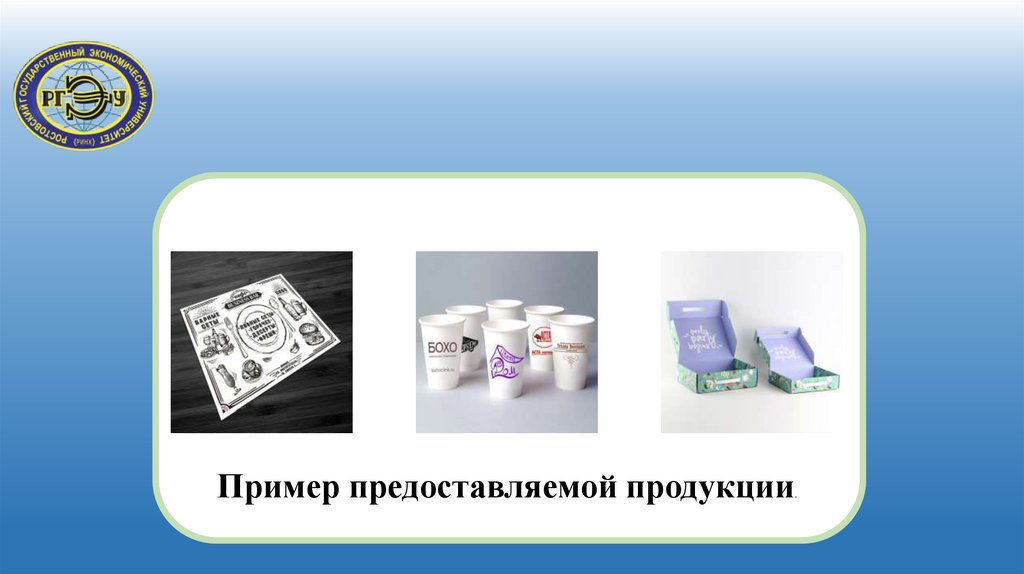 стаканы с принтом и картонные коробки с принтом. Тип печати - плоскография;