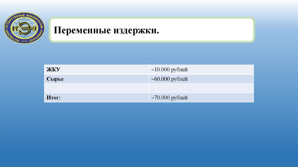 районе, стоимость ЖКУ в районе и прочие переменные расходы. Для постоянных