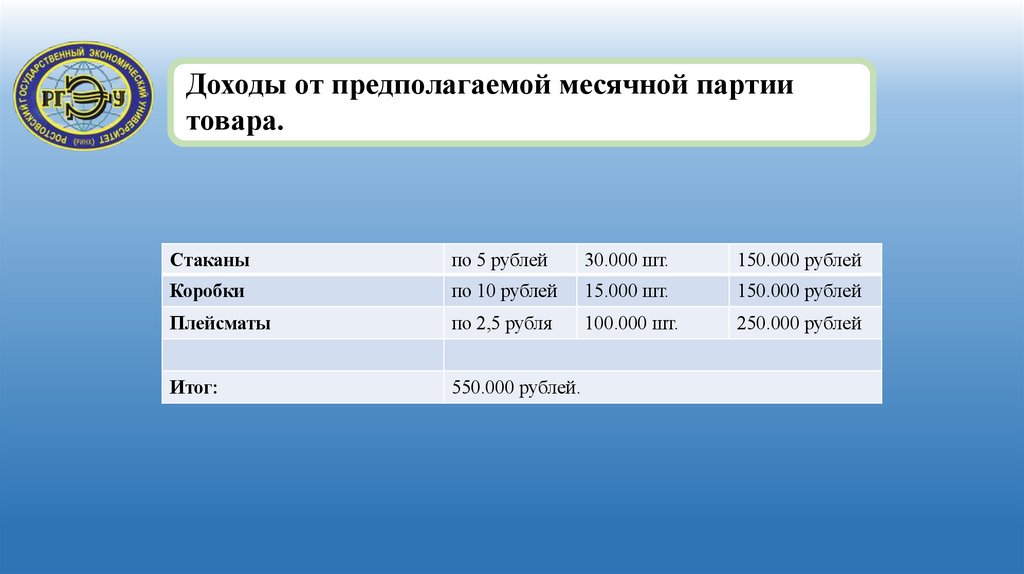 расчет мы приняли территориальный фактор, конкуренцию, стоимость сырья в