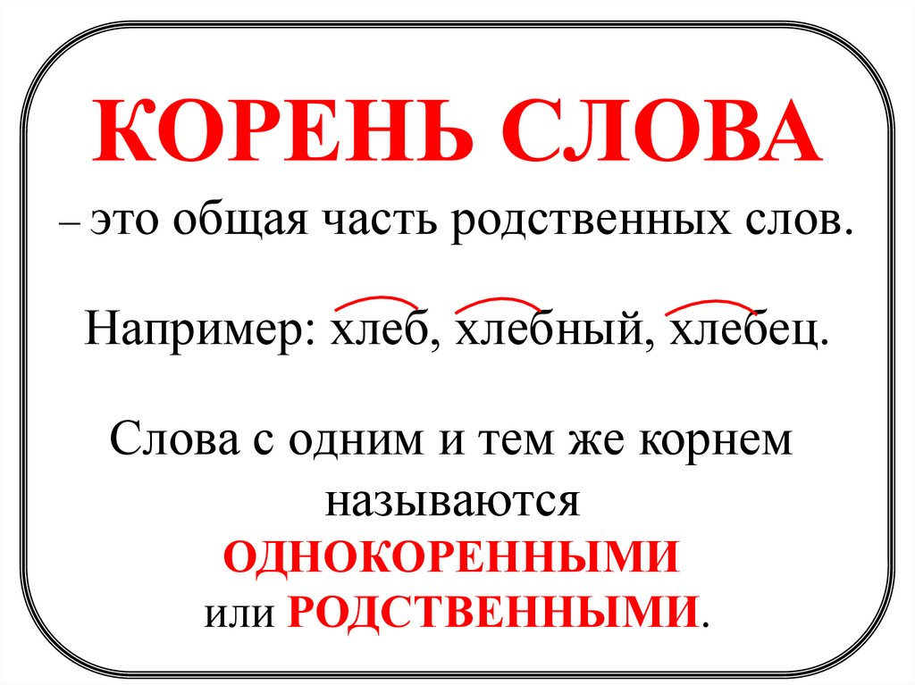 КОРЕНЬ СЛОВА– это общая часть родственных слов.