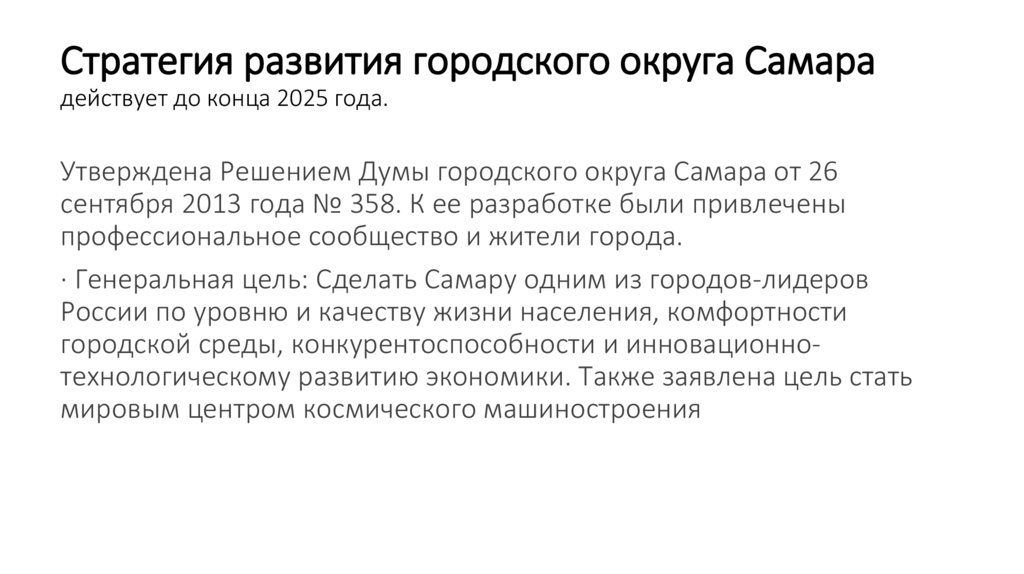 Стратегия развития городского округа Самарадействует до конца 2025 года.