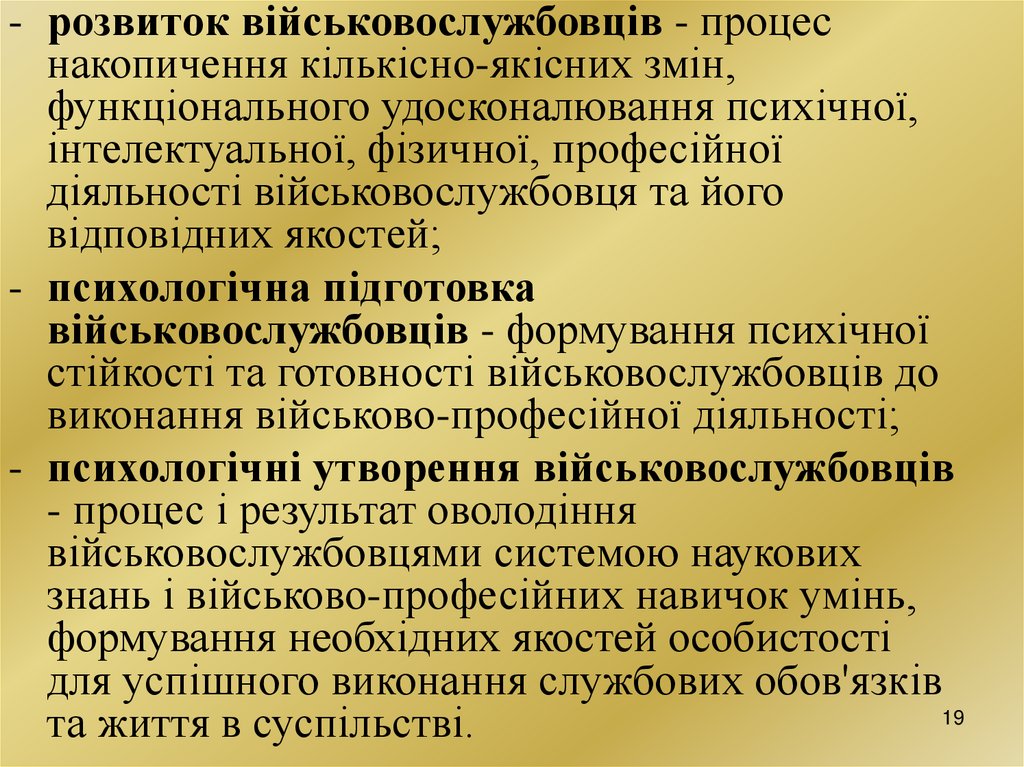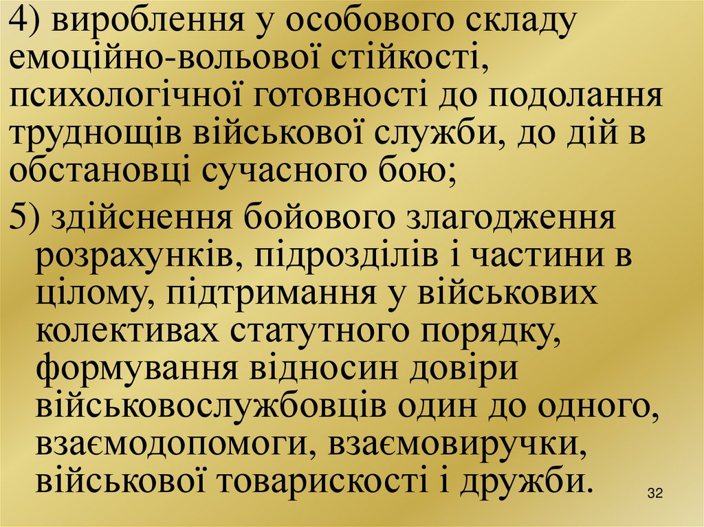 4) вироблення у особового складуемоційно-вольової стійкості,