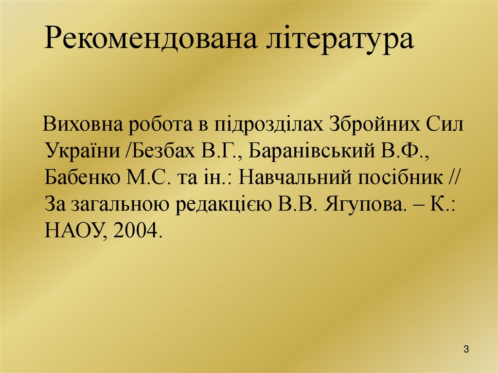 Рекомендована літератураВиховна робота в підрозділах Збройних Сил