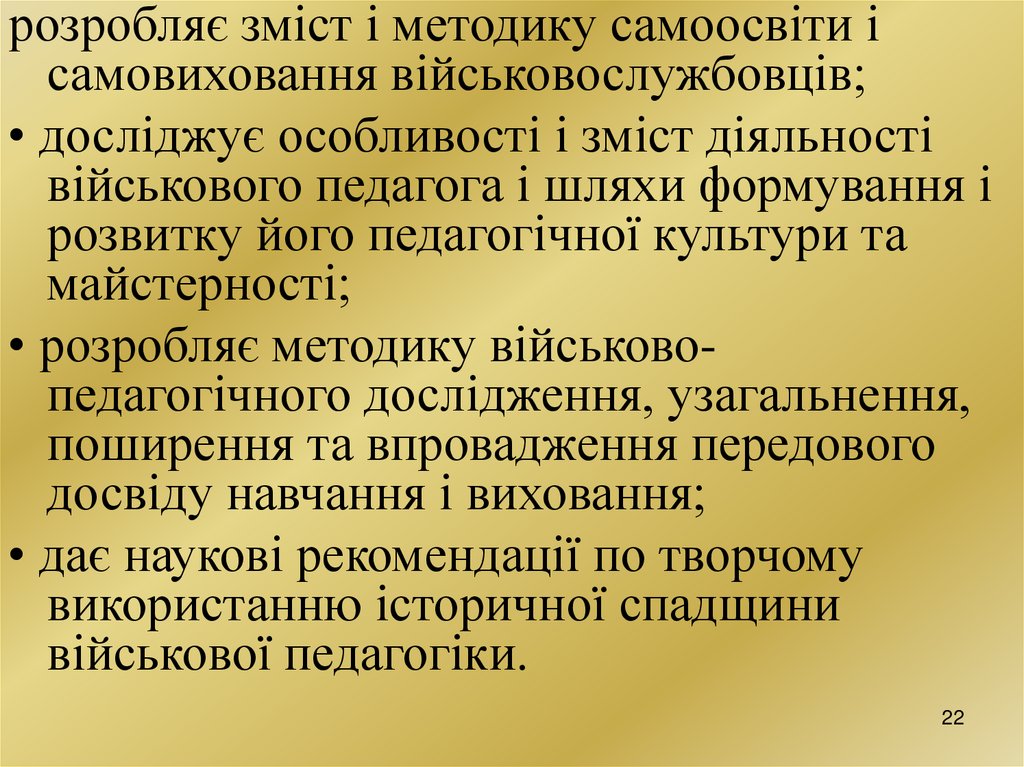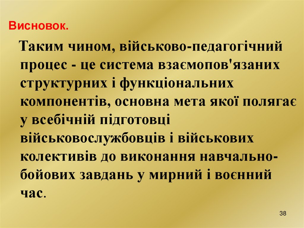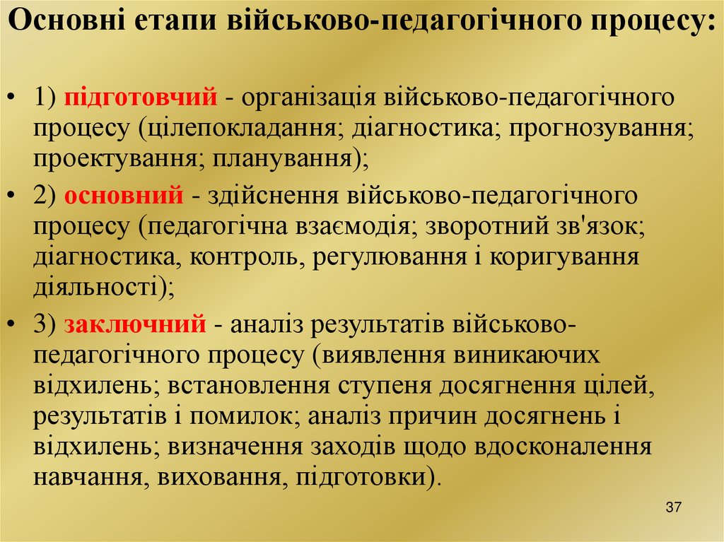 • 3) заключний - аналіз результатів військовопедагогічного процесу (виявлення виникаючих