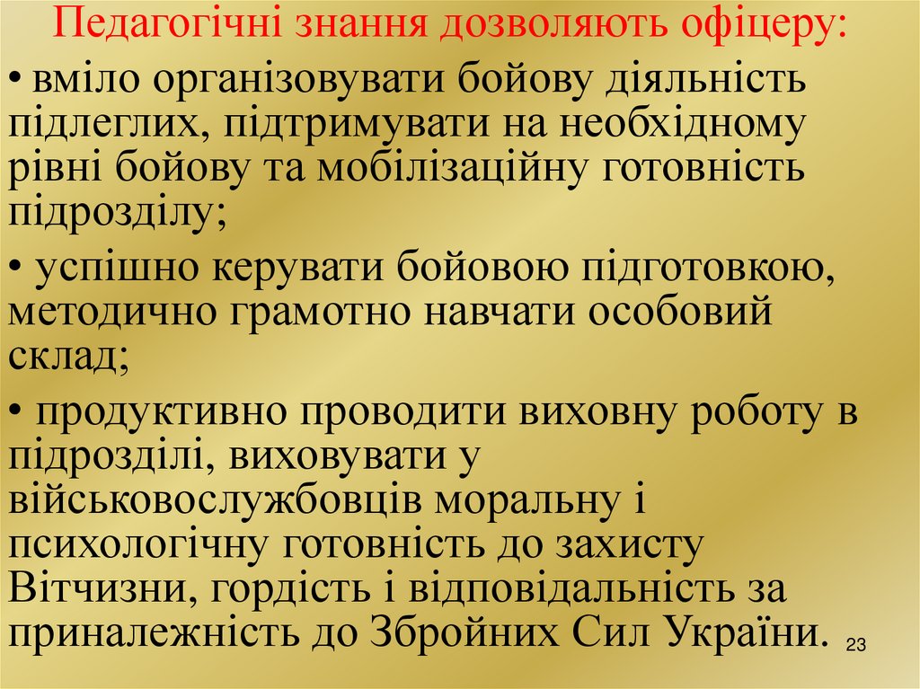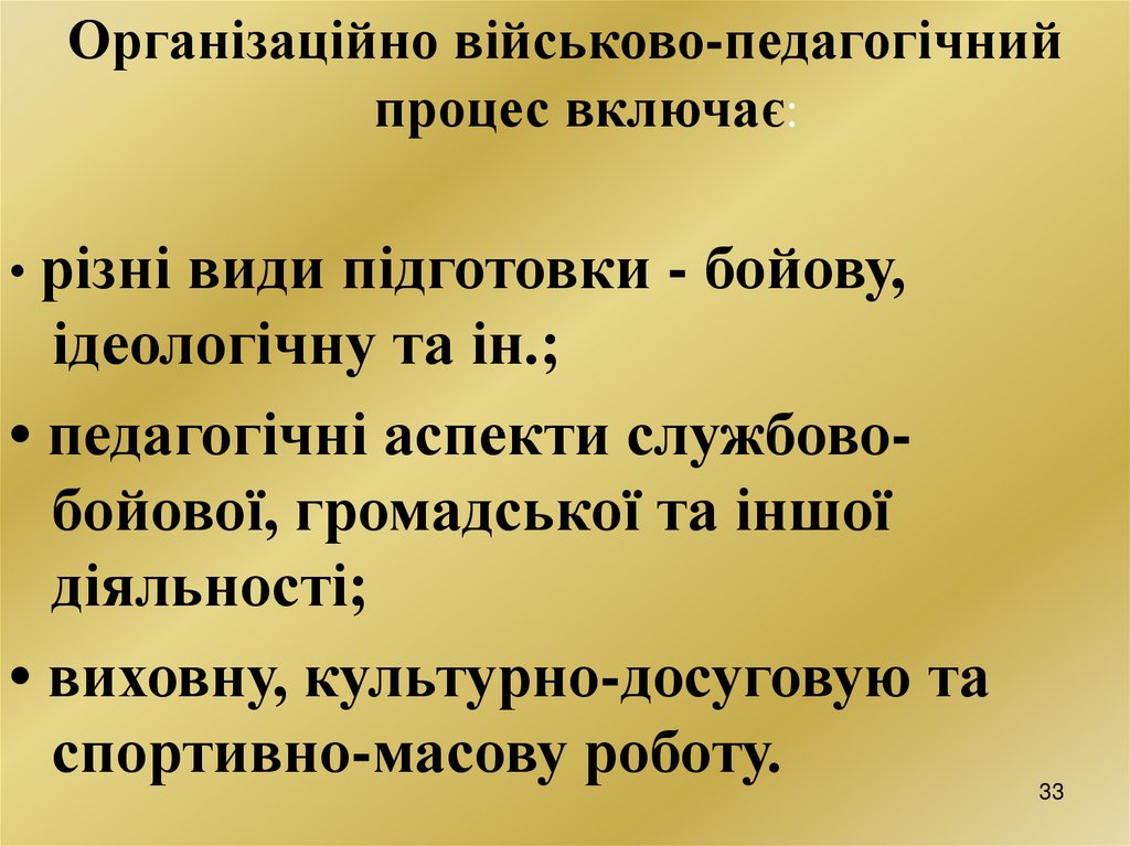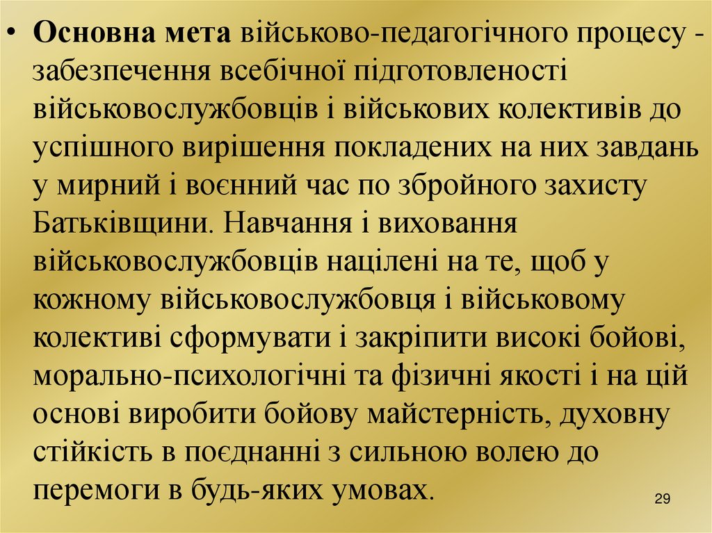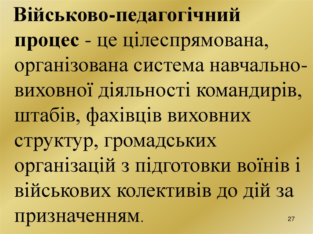 • Суб'єктами військово-педагогічного процесувиступають командири, штаби, офіцери