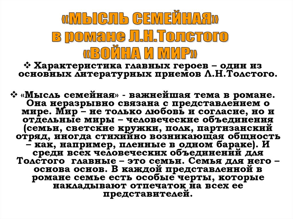 Характеристика главных героев – один изосновных литературных приемов Л.Н.Толстого.