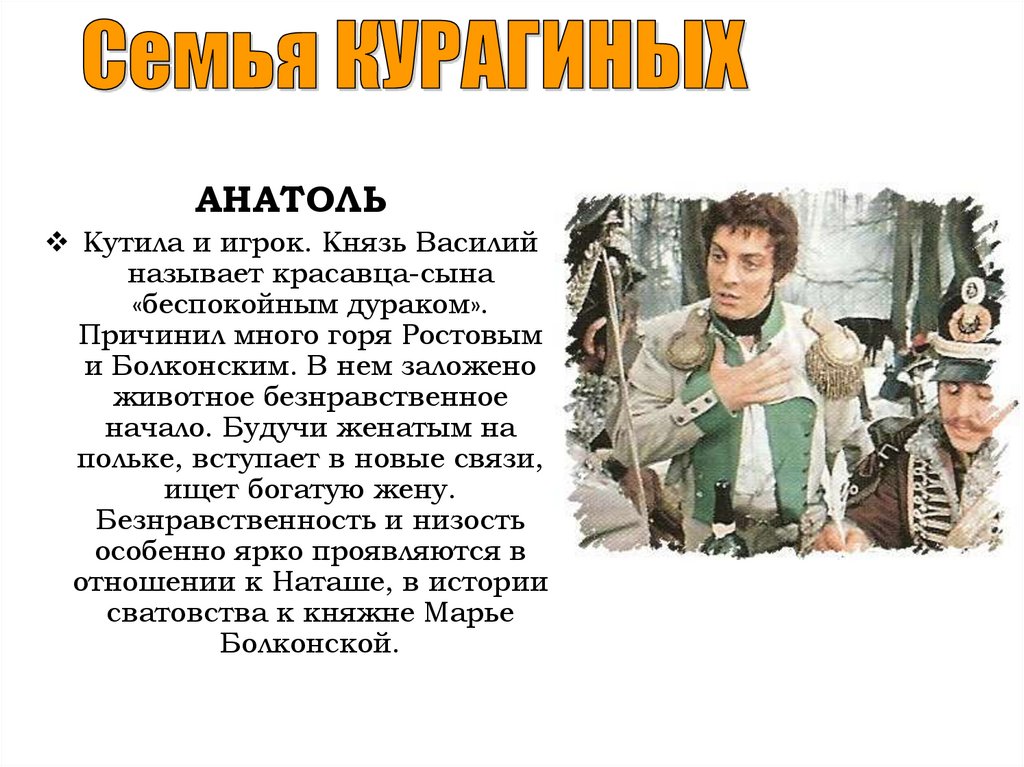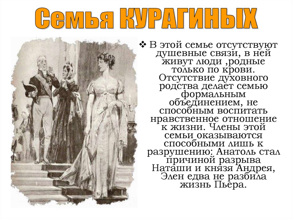 – богатая и влиятельная семья. Главасемьи, старик Безухов – это знатный, богатый, но