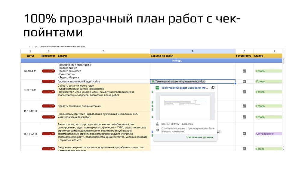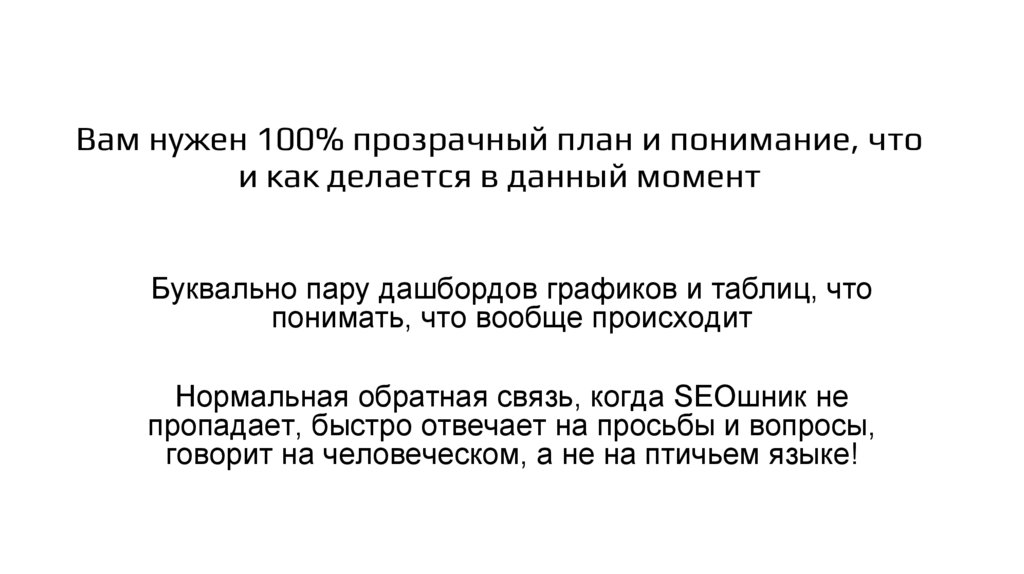 Вам нужен 100% прозрачный план и понимание, чтои как делается в данный момент