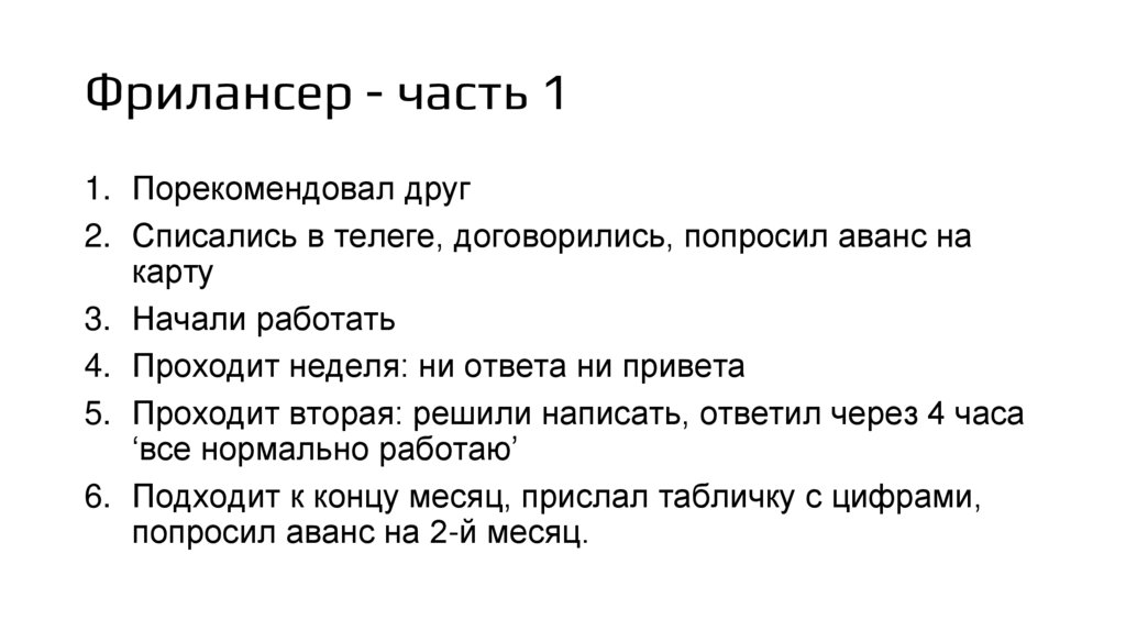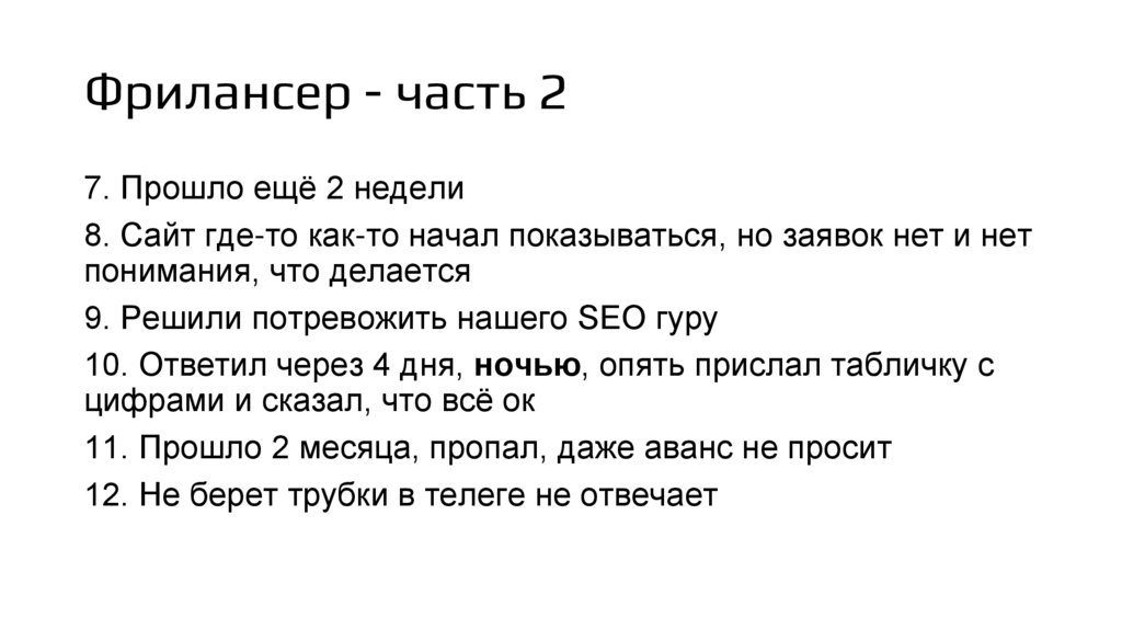 11. Прошло 2 месяца, пропал, даже аванс не просит