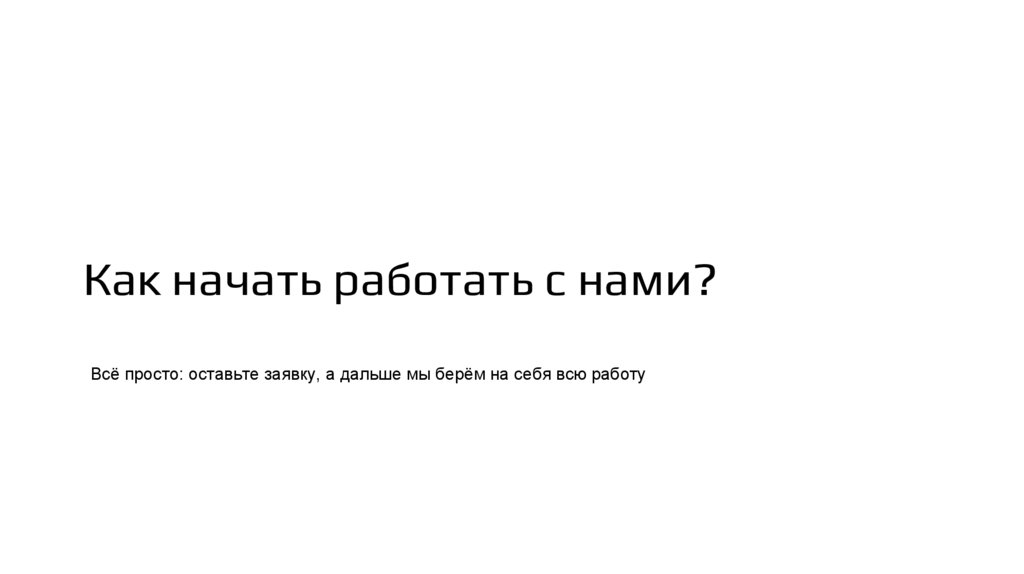 Как начать работать с нами?Всё просто: оставьте заявку, а дальше мы берём на себя всю работу