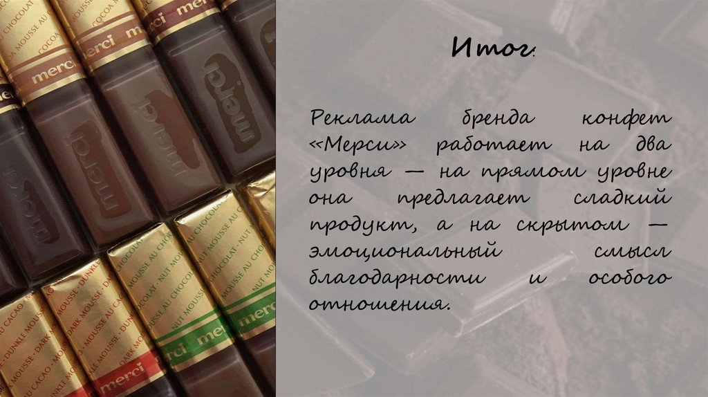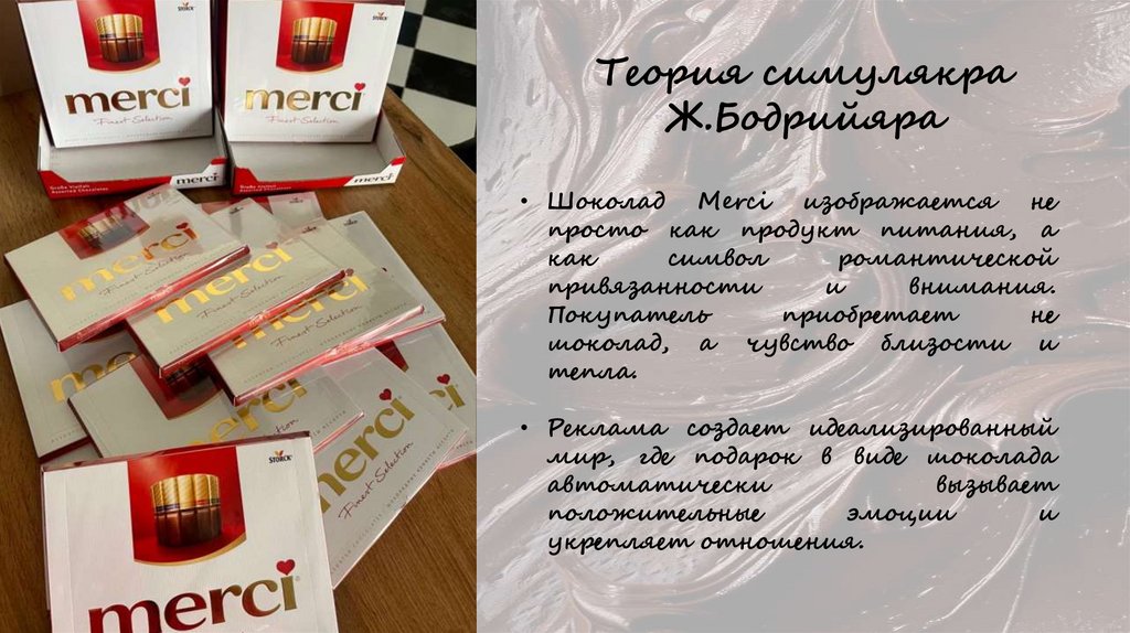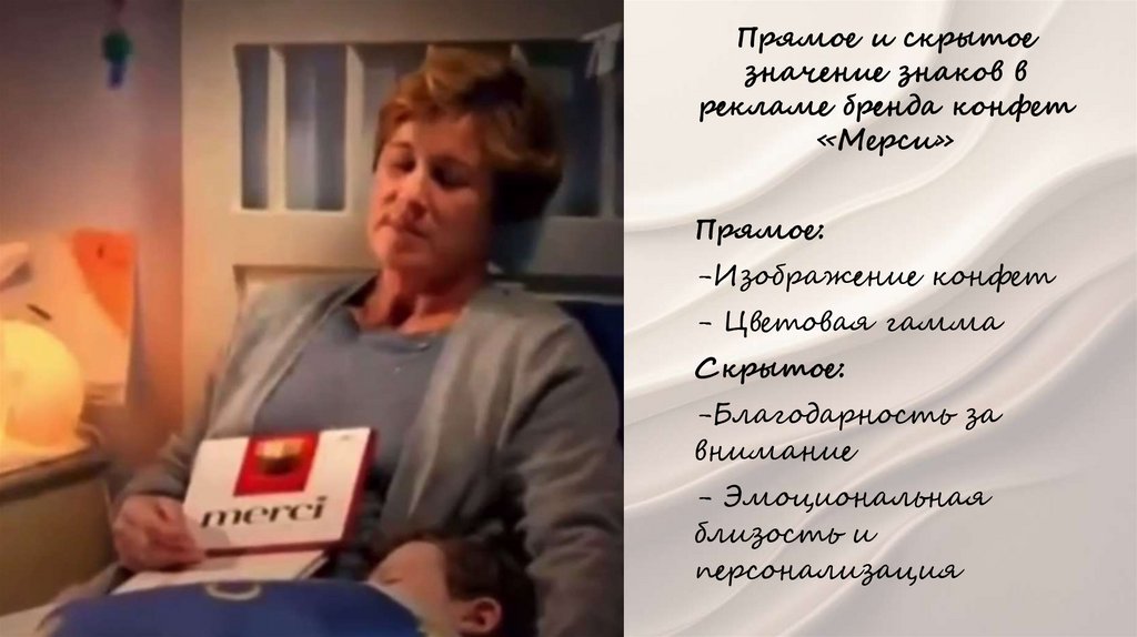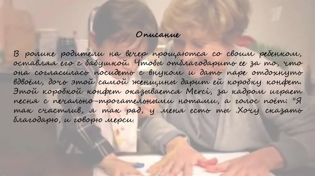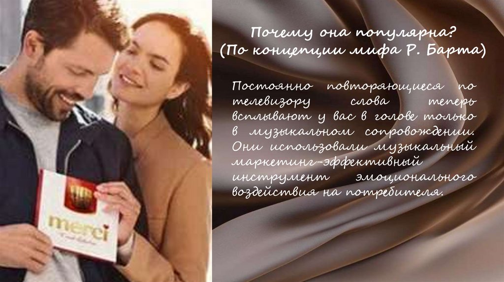 Этой коробкой конфет оказывается Merci, за кадром играет