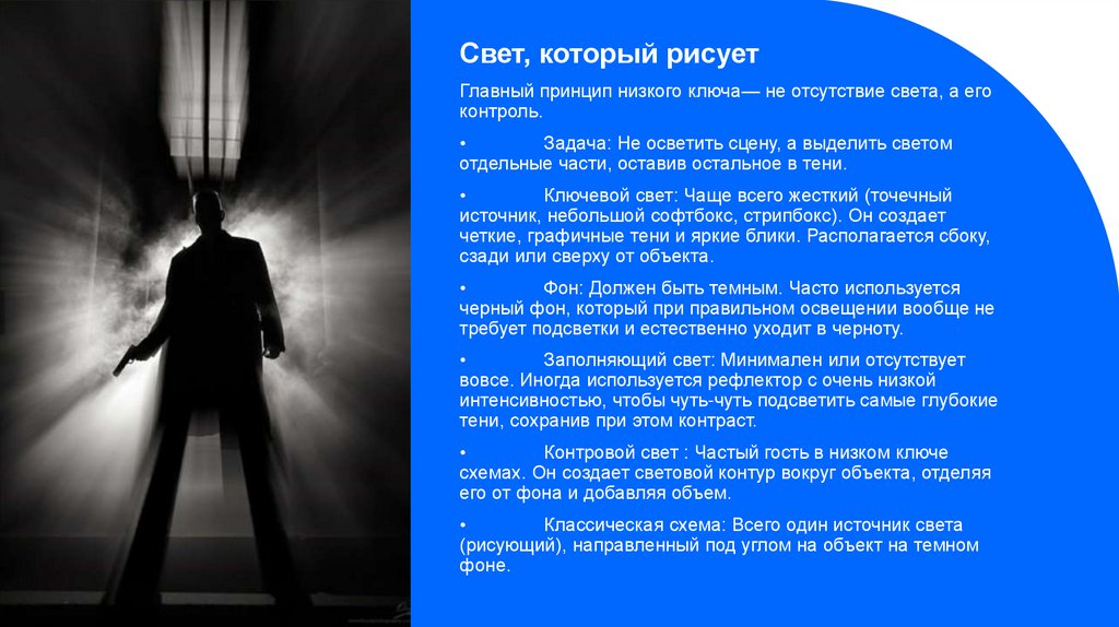Свет, который рисуетГлавный принцип низкого ключа— не отсутствие света, а его