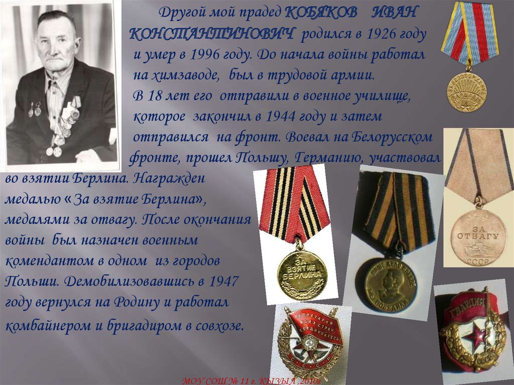 Другой мой прадед КОБЯКОВ ИВАНКОНСТАНТИНОВИЧ родился в 1926 году