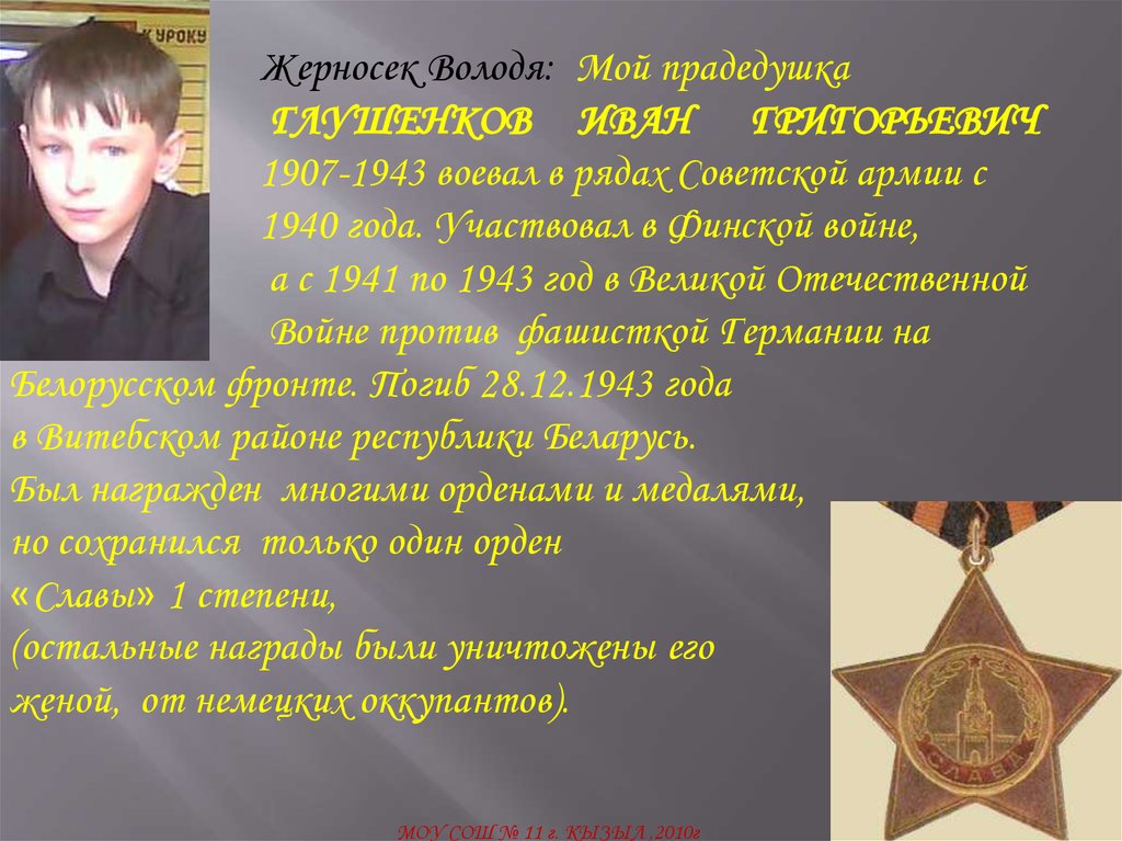 Жерносек Володя: Мой прадедушкаГЛУШЕНКОВ ИВАН ГРИГОРЬЕВИЧ