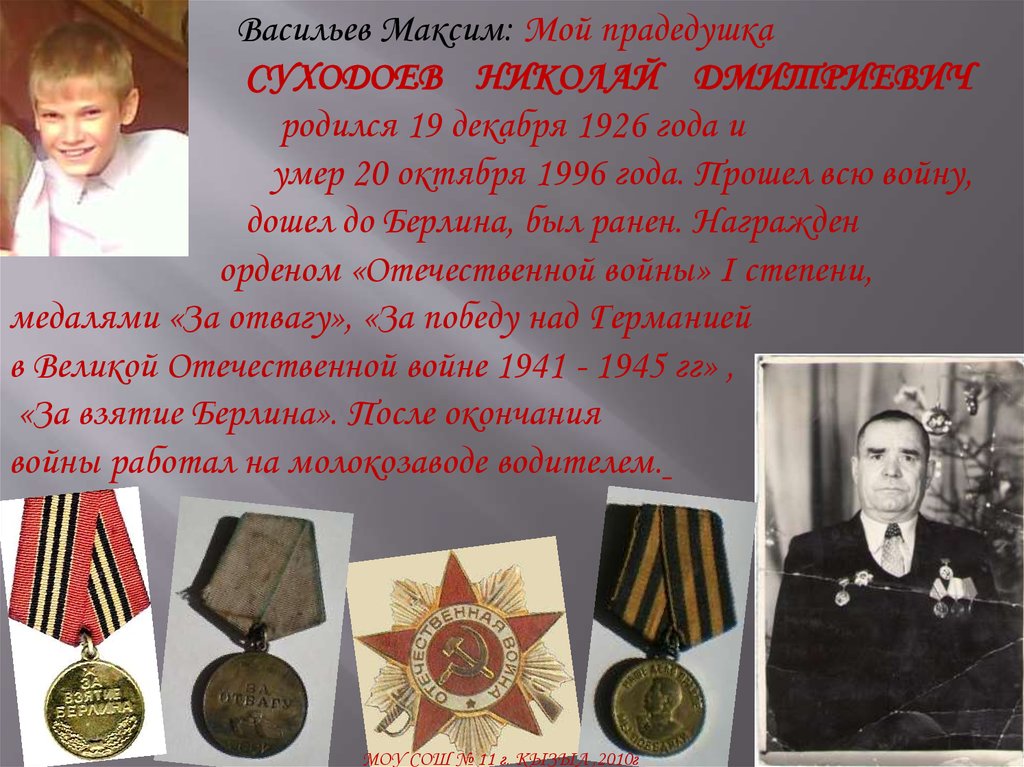 Васильев Максим: Мой прадедушкаСУХОДОЕВ НИКОЛАЙ ДМИТРИЕВИЧ