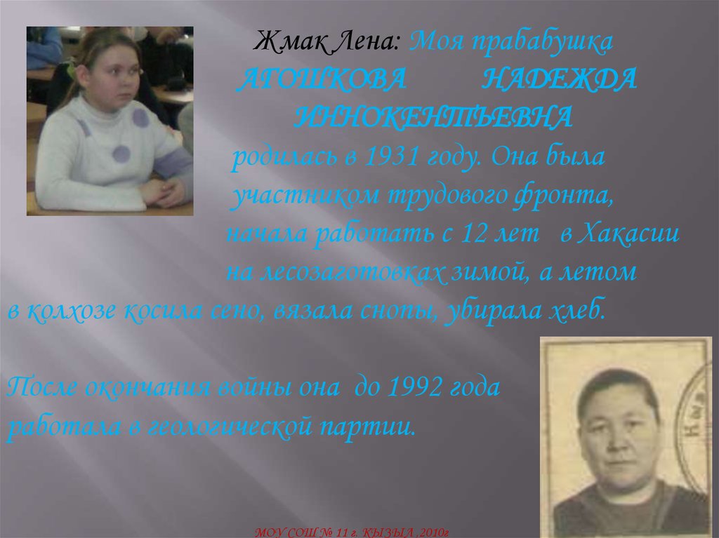 начала работать с 12 лет в Хакасии