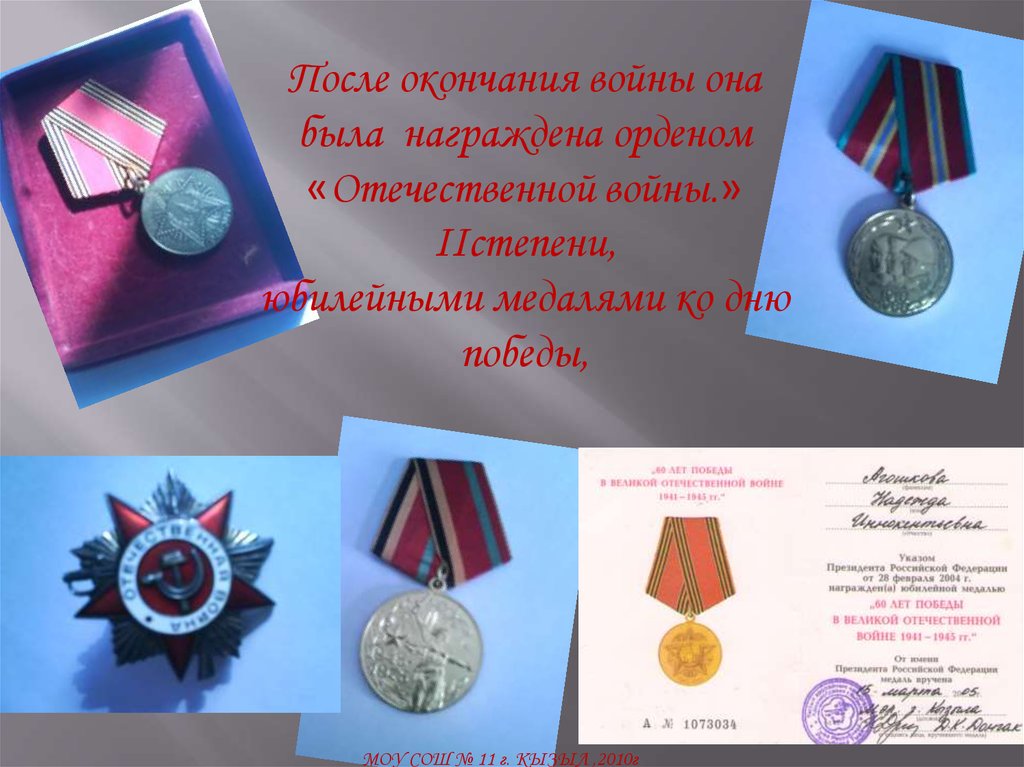 медалями за отвагу. После окончания