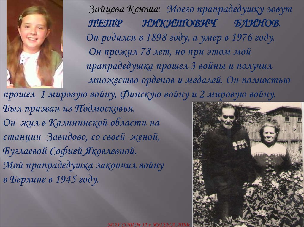 Зайцева Ксюша: Моего прапрадедушку зовутПЕТР