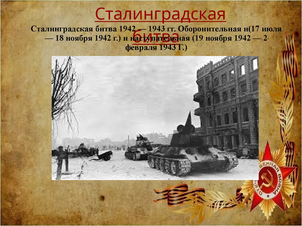 СталинградскаяСталинградская битва 1942 — 1943 гг. Оборонительная и(17 июля