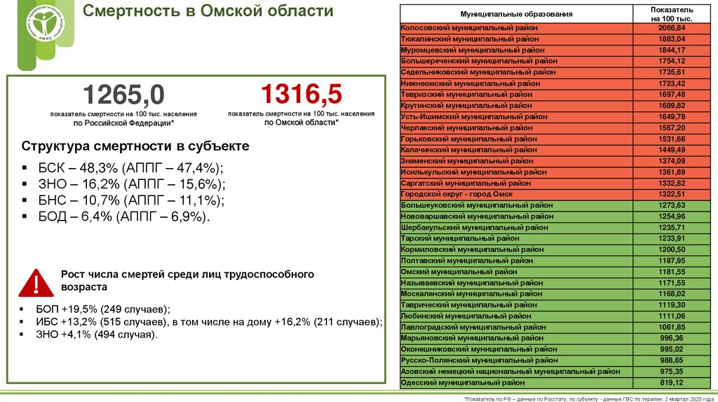 *Показатель по РФ – данные по Росстату, по субъекту - данные ГВС по терапии, 2 квартал 2025 года