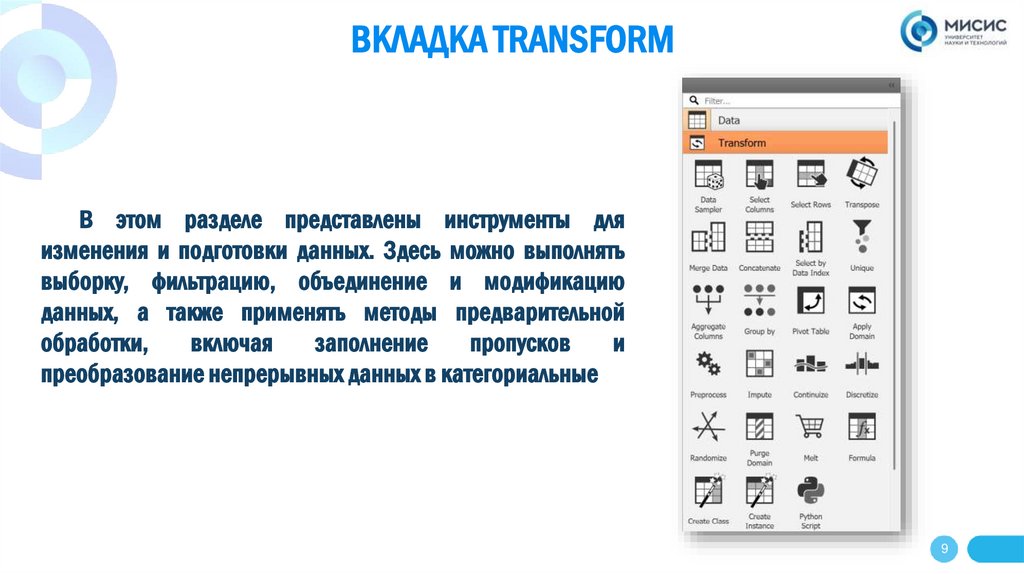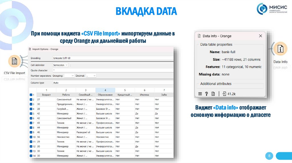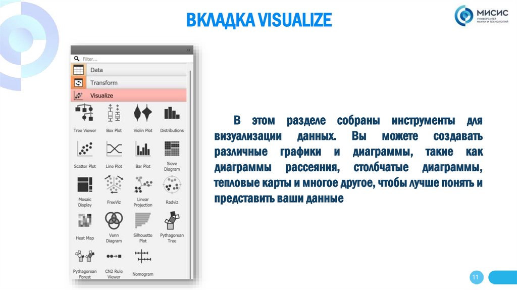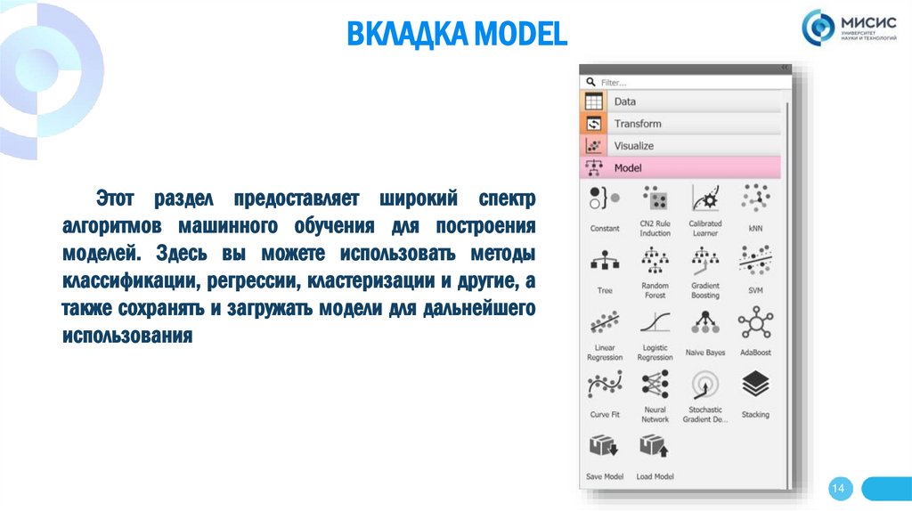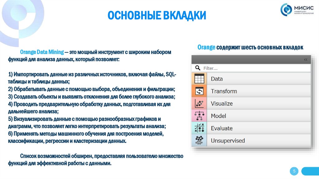 ОСНОВНЫЕ ВКЛАДКИOrange Data Mining — это мощный инструмент с широким набором