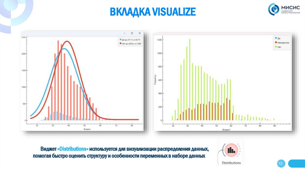 ВКЛАДКА VISUALIZEВиджет «Distributions» используется для визуализации распределения данных,