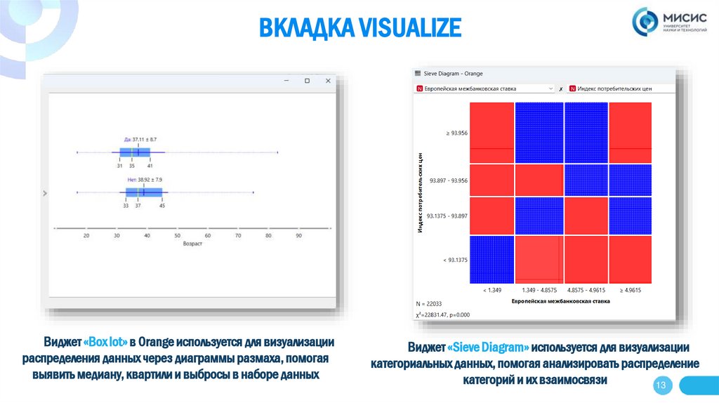 ВКЛАДКА VISUALIZEВиджет «Box lot» в Orange используется для визуализации