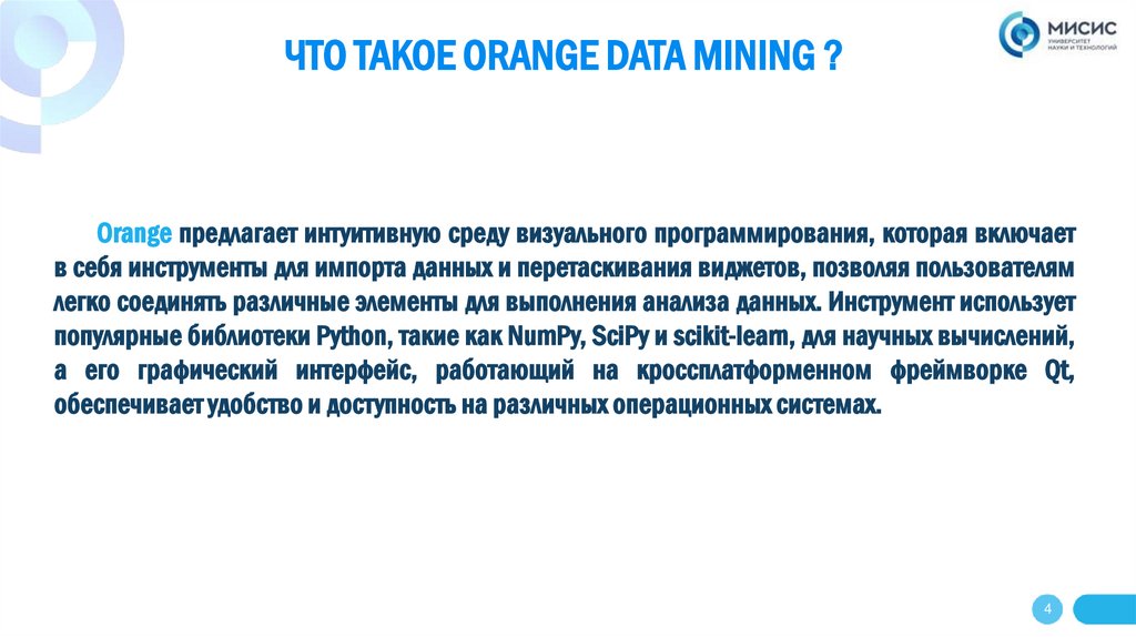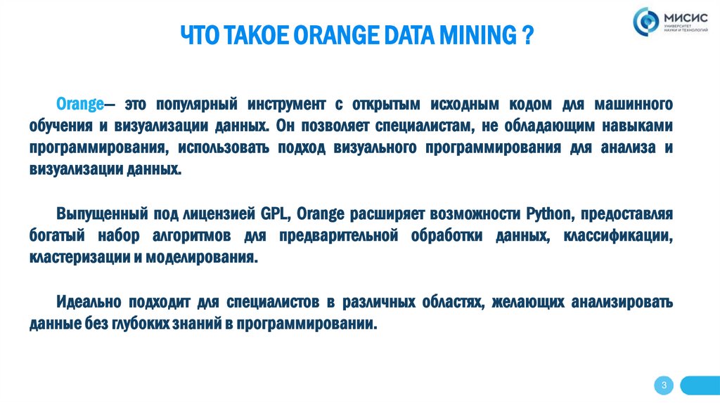 ЧТО ТАКОЕ ORANGE DATA MINING ?Orange предлагает интуитивную среду визуального программирования, которая включает