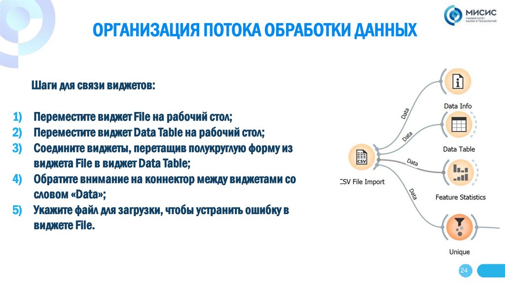 ОРГАНИЗАЦИЯ ПОТОКА ОБРАБОТКИ ДАННЫХШаги для связи виджетов: