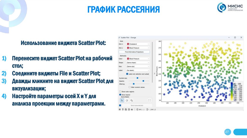 ГРАФИК РАССЕЯНИЯИспользование виджета Scatter Plot: