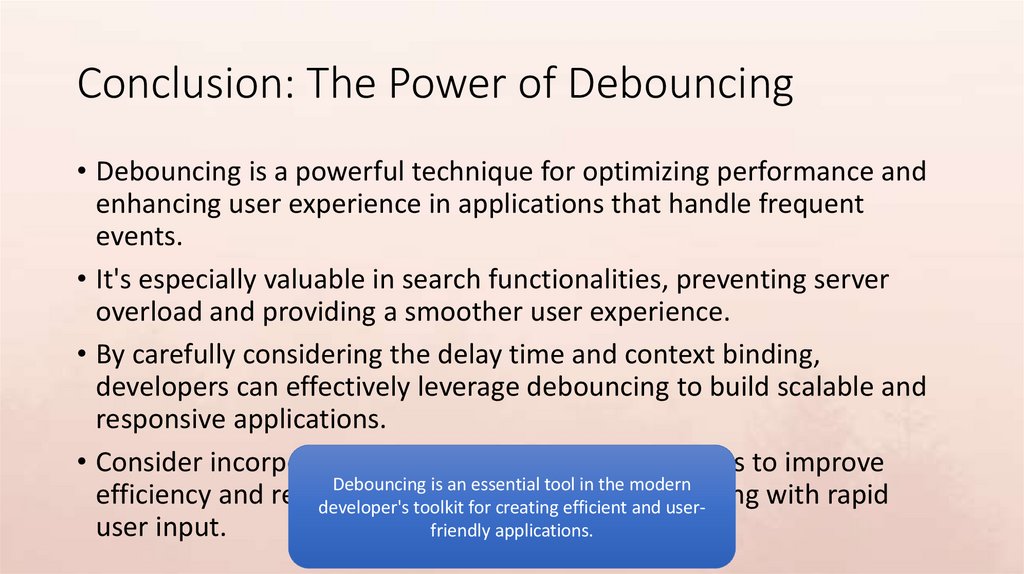 Conclusion: The Power of Debouncing• Debouncing is a powerful technique for optimizing performance and