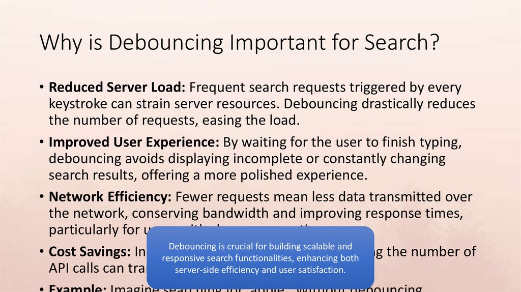 Why is Debouncing Important for Search?• Reduced Server Load: Frequent search requests triggered by every