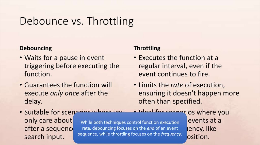 Debounce vs. ThrottlingDebouncing
