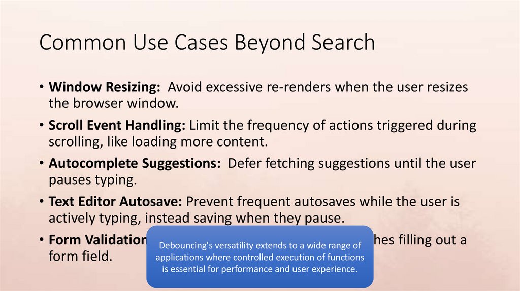 Common Use Cases Beyond Search• Window Resizing: Avoid excessive re-renders when the user resizes