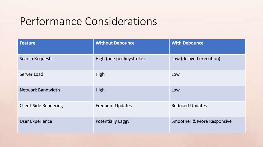 keystroke can strain server resources. Debouncing drastically reduces