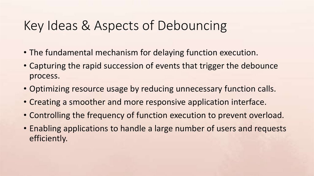 Key Ideas & Aspects of Debouncing• The fundamental mechanism for delaying function execution.