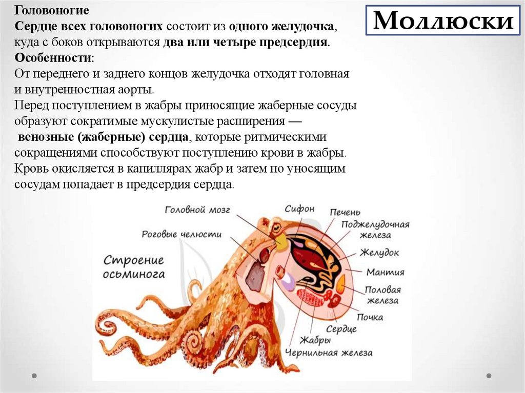ГоловоногиеСердце всех головоногих состоит из одного желудочка,