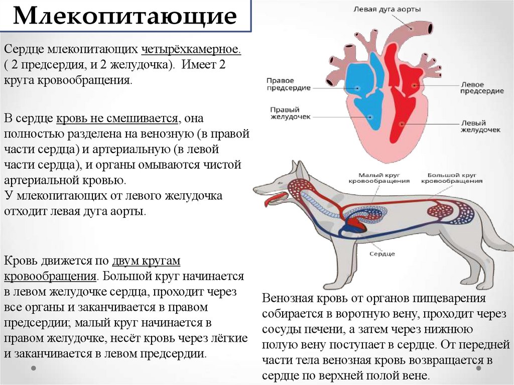 МлекопитающиеСердце млекопитающих четырёхкамерное.