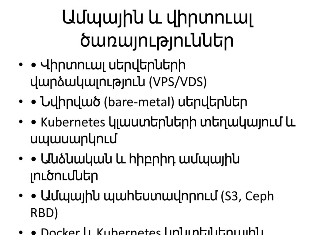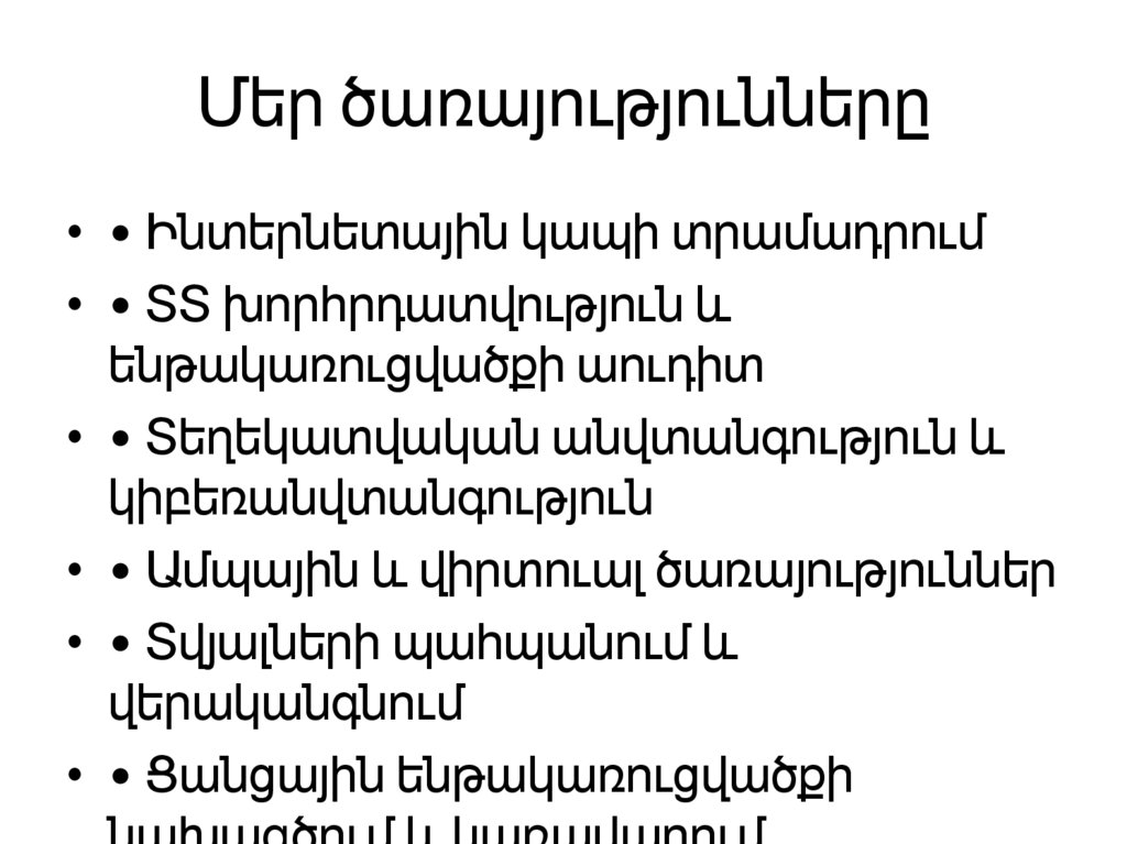 Մեր ծառայությունները• • Ինտերնետային կապի տրամադրում