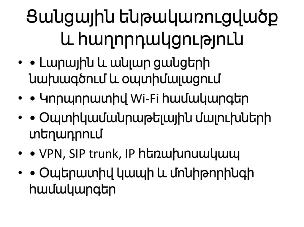 • • VPN, SIP trunk, IP հեռախոսակապ
