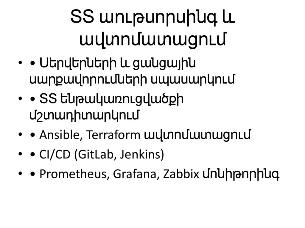 • • Prometheus, Grafana, Zabbix մոնիթորինգ