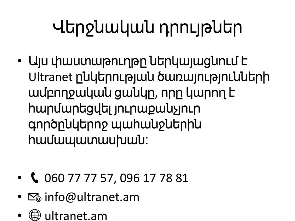 Վերջնական դրույթներ• Այս փաստաթուղթը ներկայացնում է