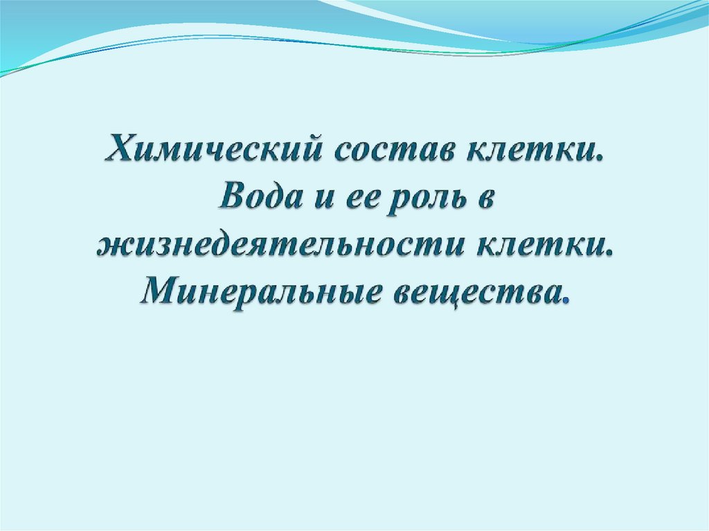 1. Химический состав клетки. Вода и ее роль в жизнедеятельности клетки. Минеральные вещества.