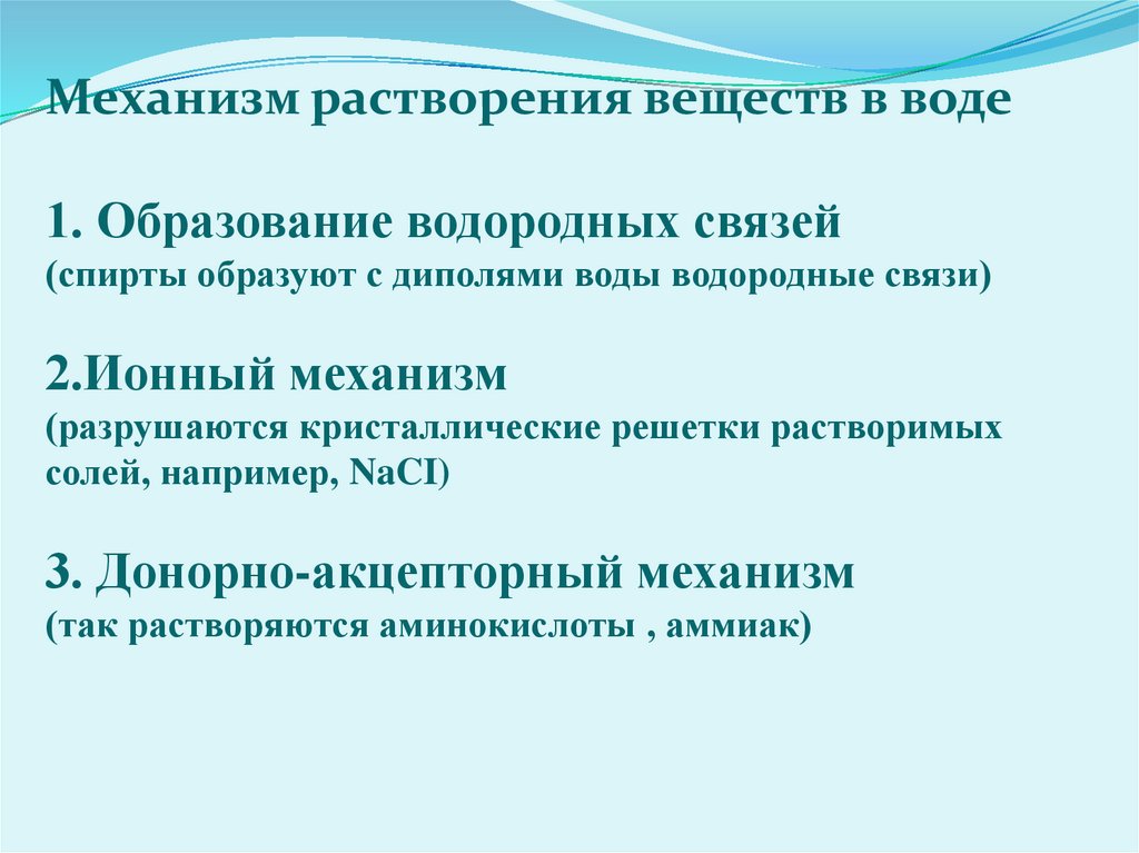 Механизм растворения веществ в воде1. Образование водородных связей