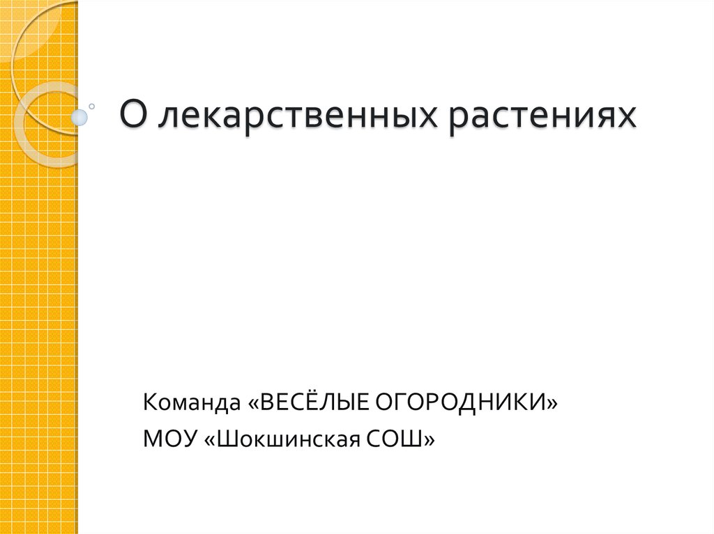 29 апреля 2017 года в МОУ «Шокшинская СОШ» состоялся конкурс мини-проектовучащихся 5 класса на тему «О ЛЕКАРСТВЕННЫХ РАСТЕНИЯХ». Из команды