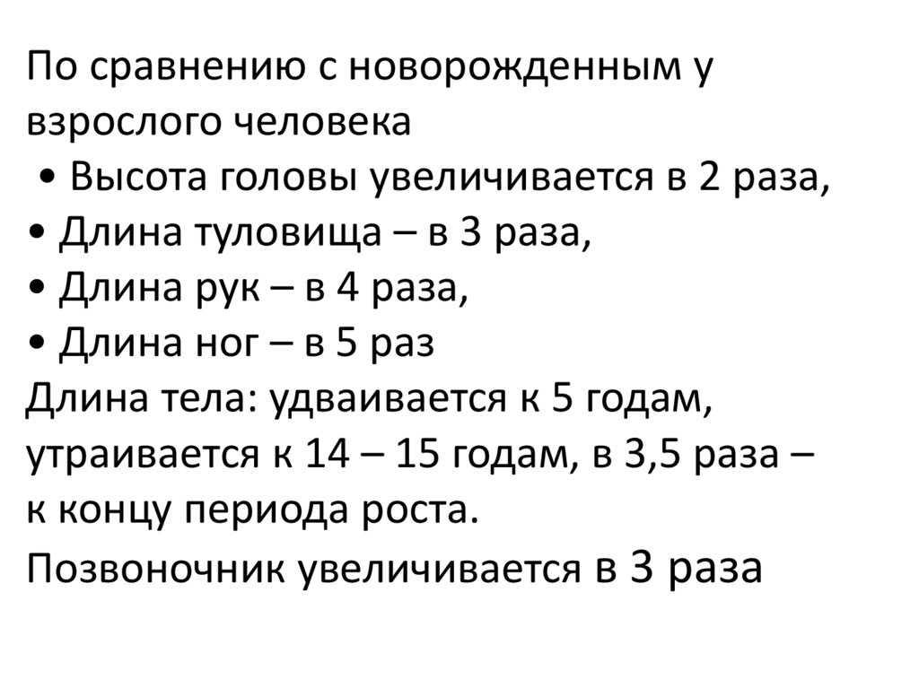 • С периода новорожденности до периода зрелости масса