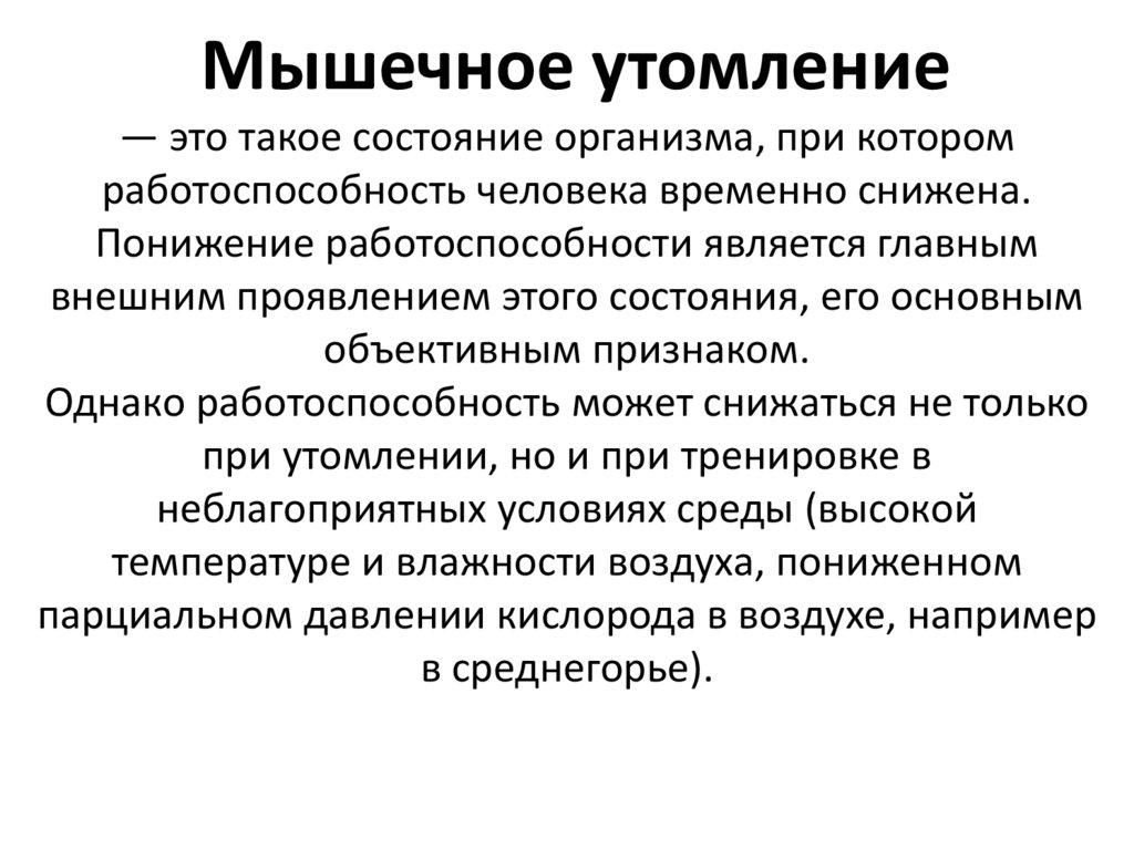 Мышечное утомление— это такое состояние организма, при котором