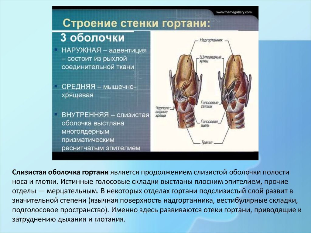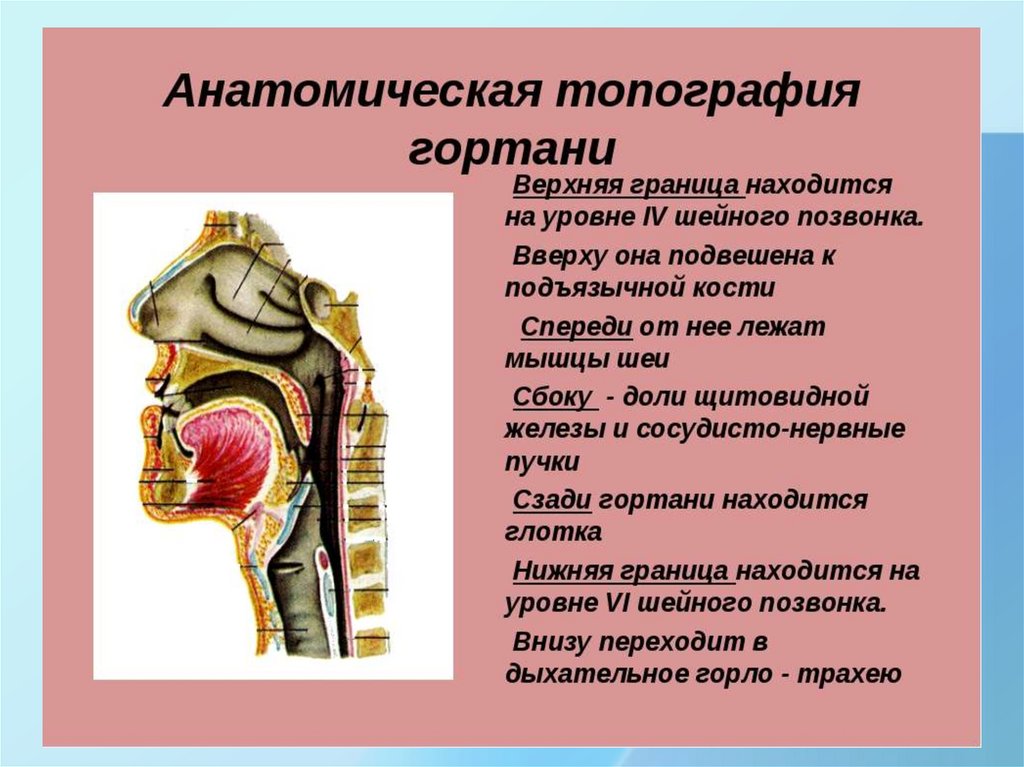 Гортань (larynx) — орган дыхания иголосообразования, начальная часть